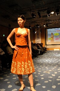 ▲「センサー制御式冷え性対策着」。腰の部分にもニクロム線が通っている=いずれも大阪市内で