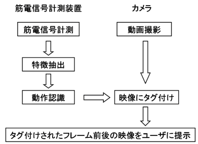 1) 身体装着カメラによりユーザの視点に近い位置から撮影した視野映像を常時獲得すると共に,